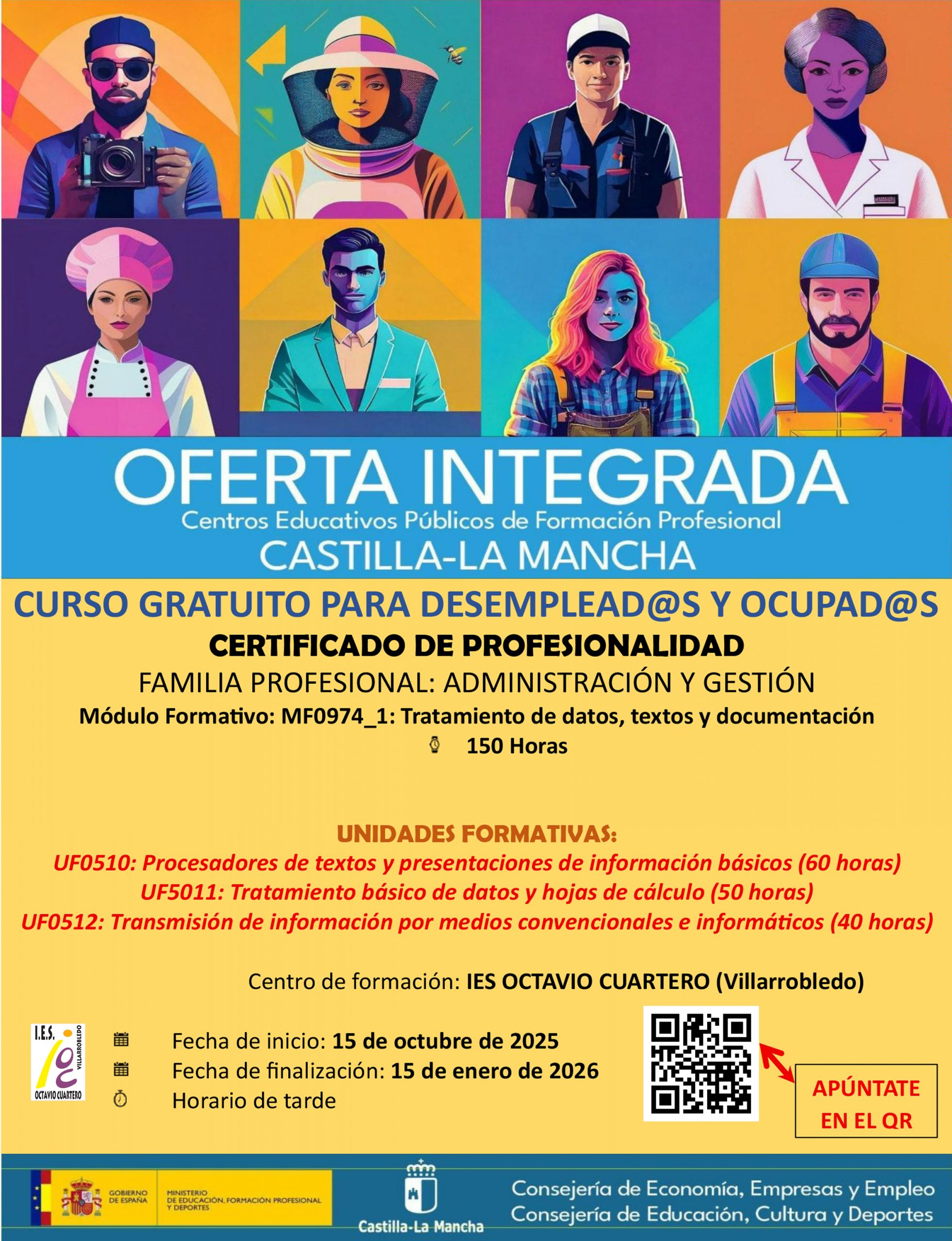 En esta ocasión, el centro desarrollará el módulo formativo MF0974_1: Tratamiento de datos, textos y documentación, con una duración de 150 horas.
